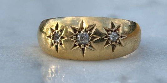 Antique Heavy Gypsy and Old Mine Cut Diamond Trilogy Ring