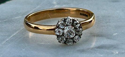 Antique Old Mine Cut Diamond Cluster Ring. Approx .65 total diamond weight.