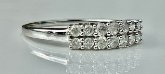 Contemporary Two Row Brilliant Cut Diamond 9k White Gold Ring
