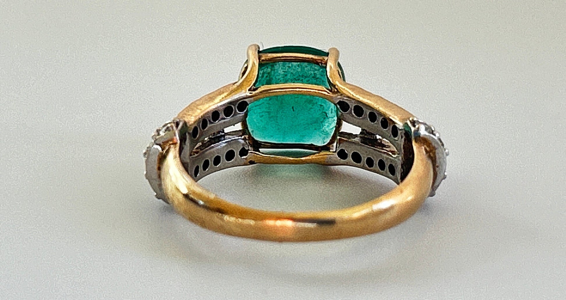 2.5 Ct Cushion Cut Natural Emerald and .50 ctw Diamond Ring