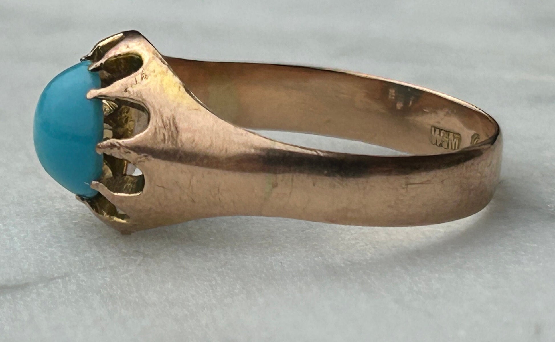 Antique Bezel Set 6.3 mm Turquoise Ring 9ct Gold