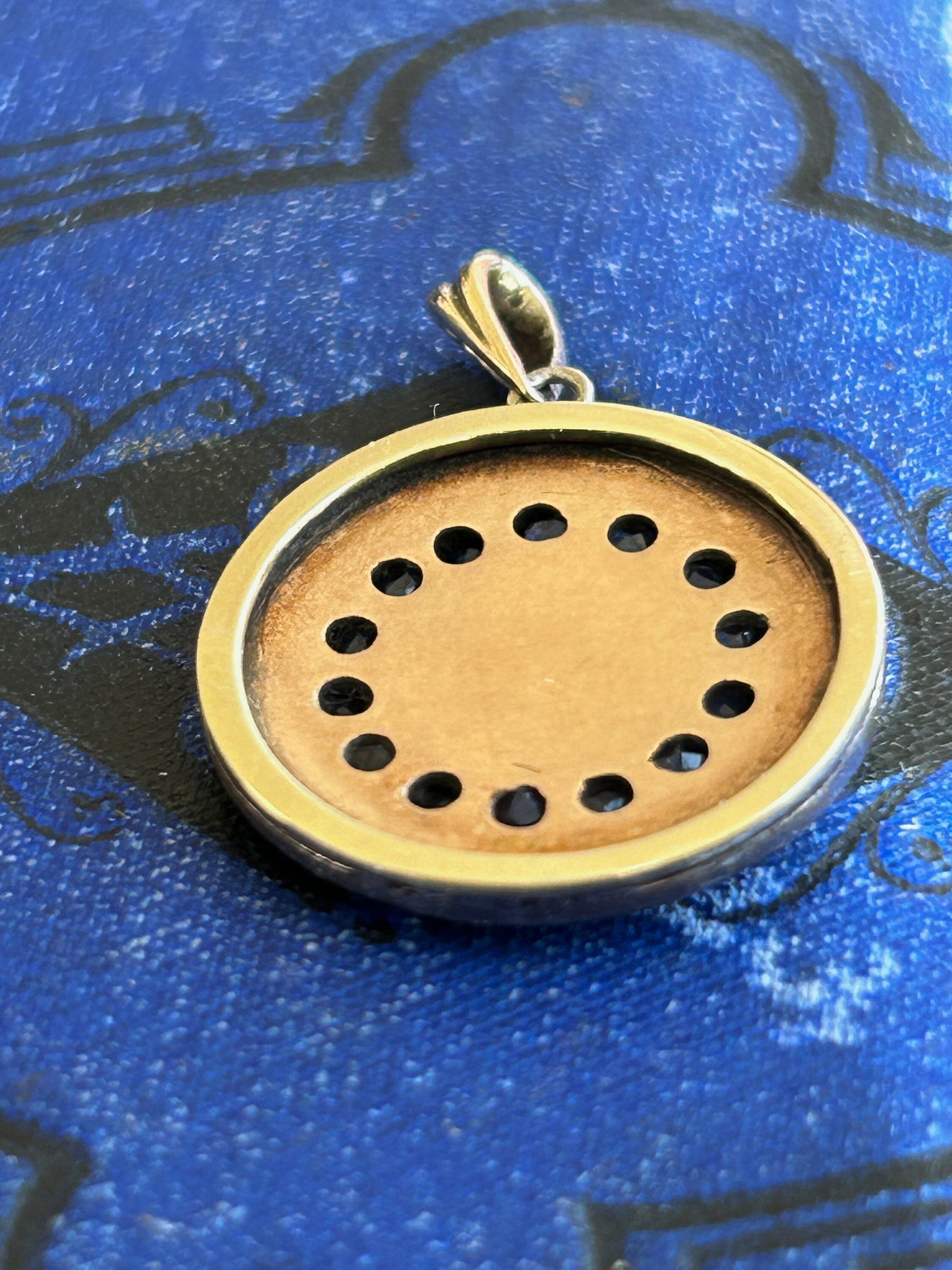 Antique Victorian Diamond and Sapphire Round Pendant, a stunning cluster design that seamlessly blends a lovely patina with old-world charm with timeless beauty.