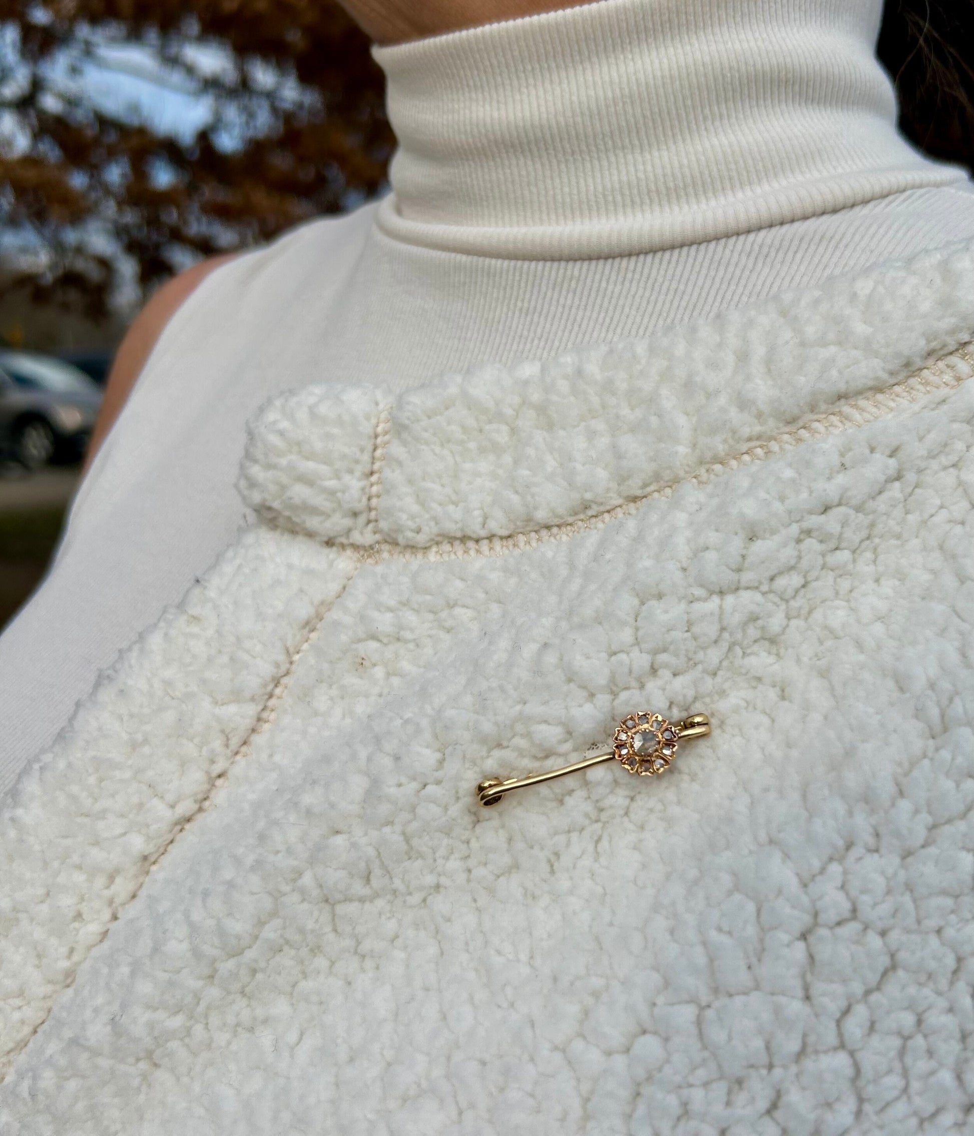 Antique Victorian Rose Cut Diamond Flower Brooch 18k Yellow Gold