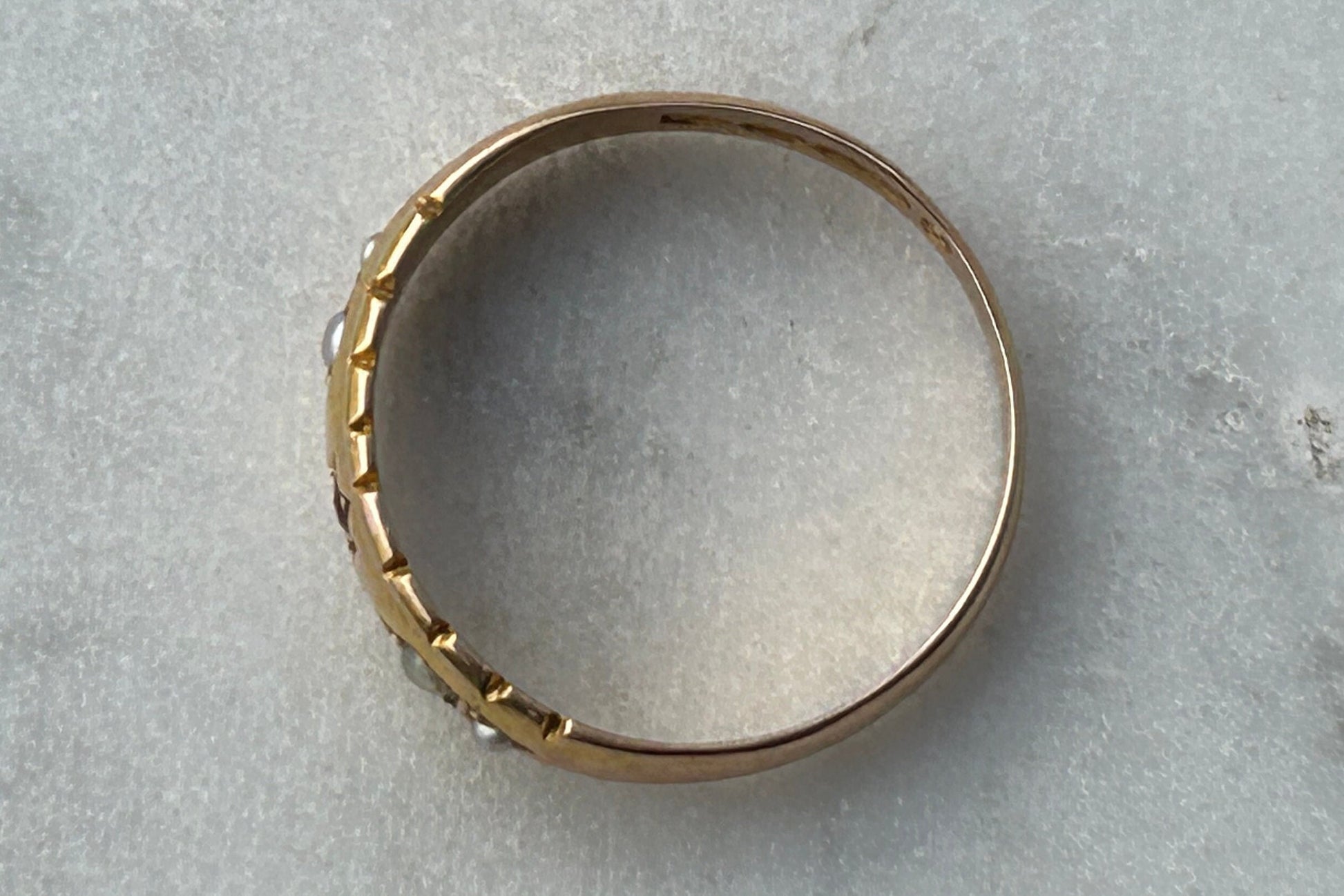 Ruby and Seed Pearl Petite Gypsy Band 15k Yellow Gold
