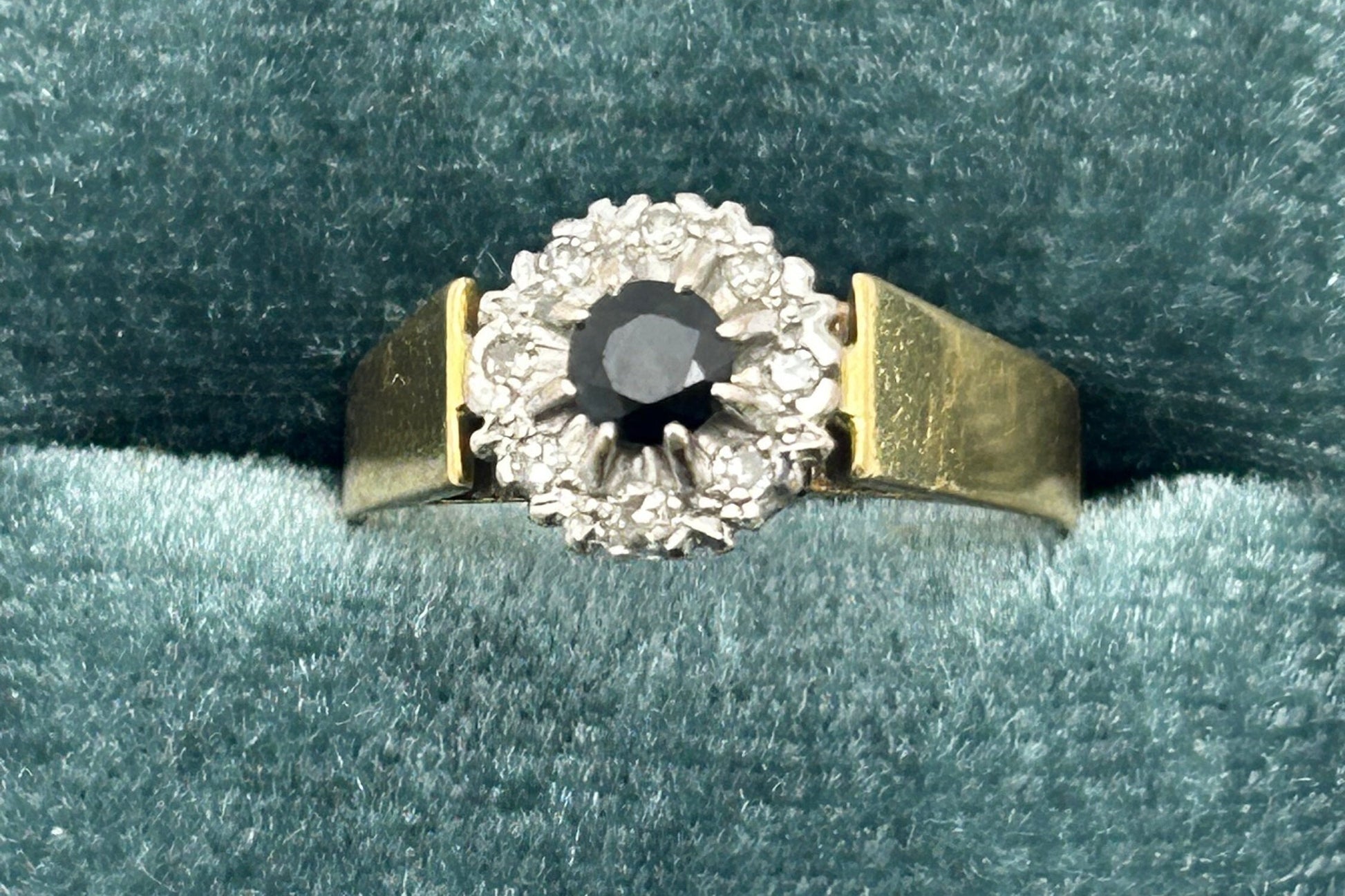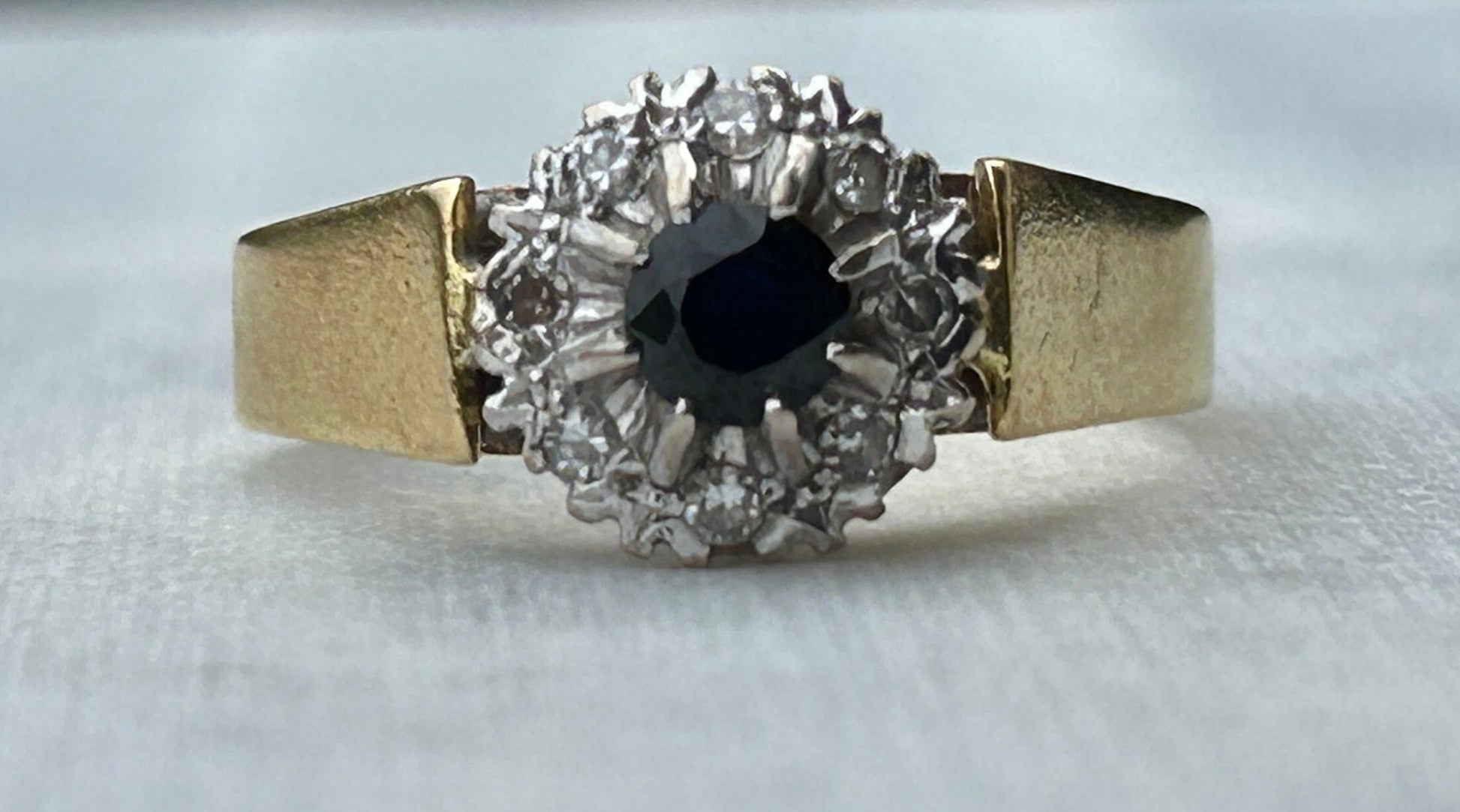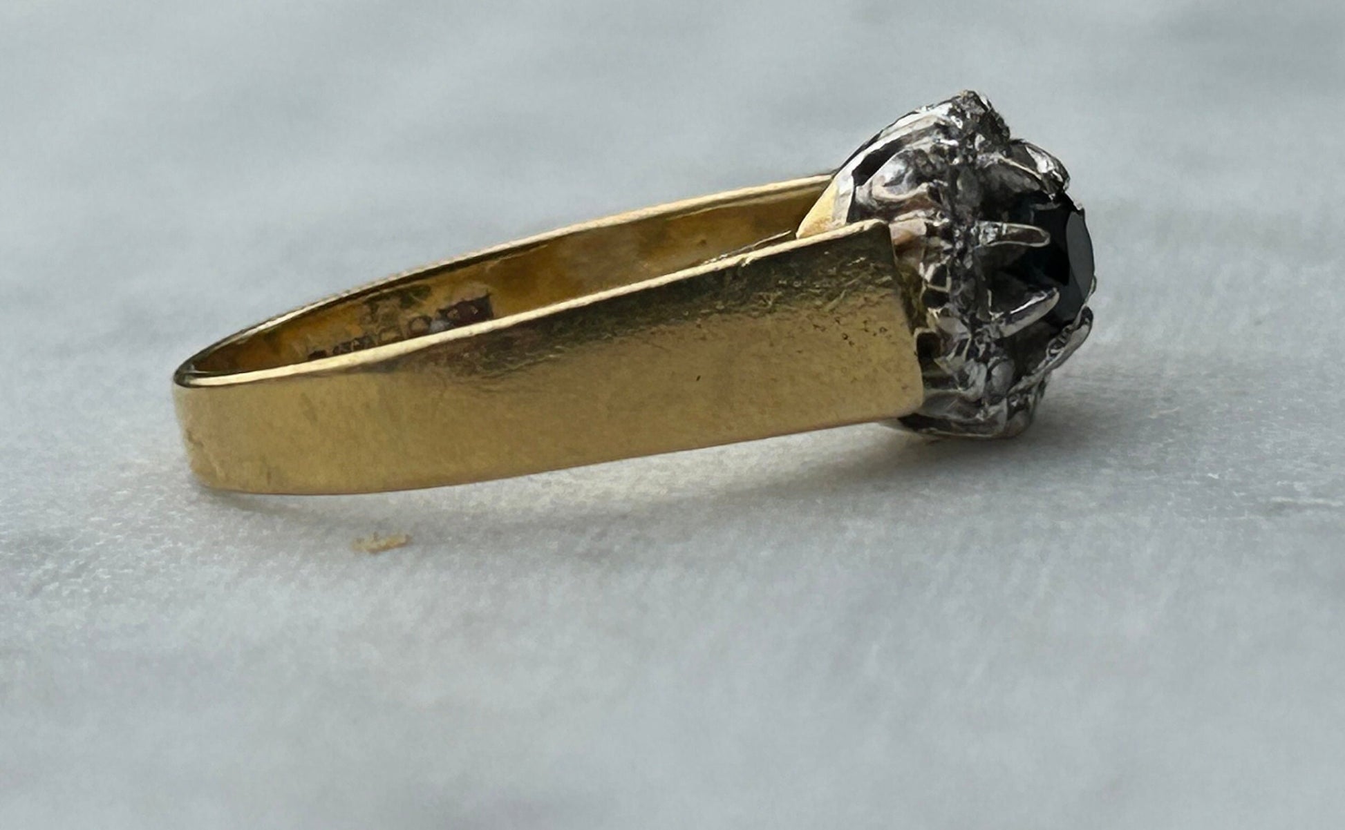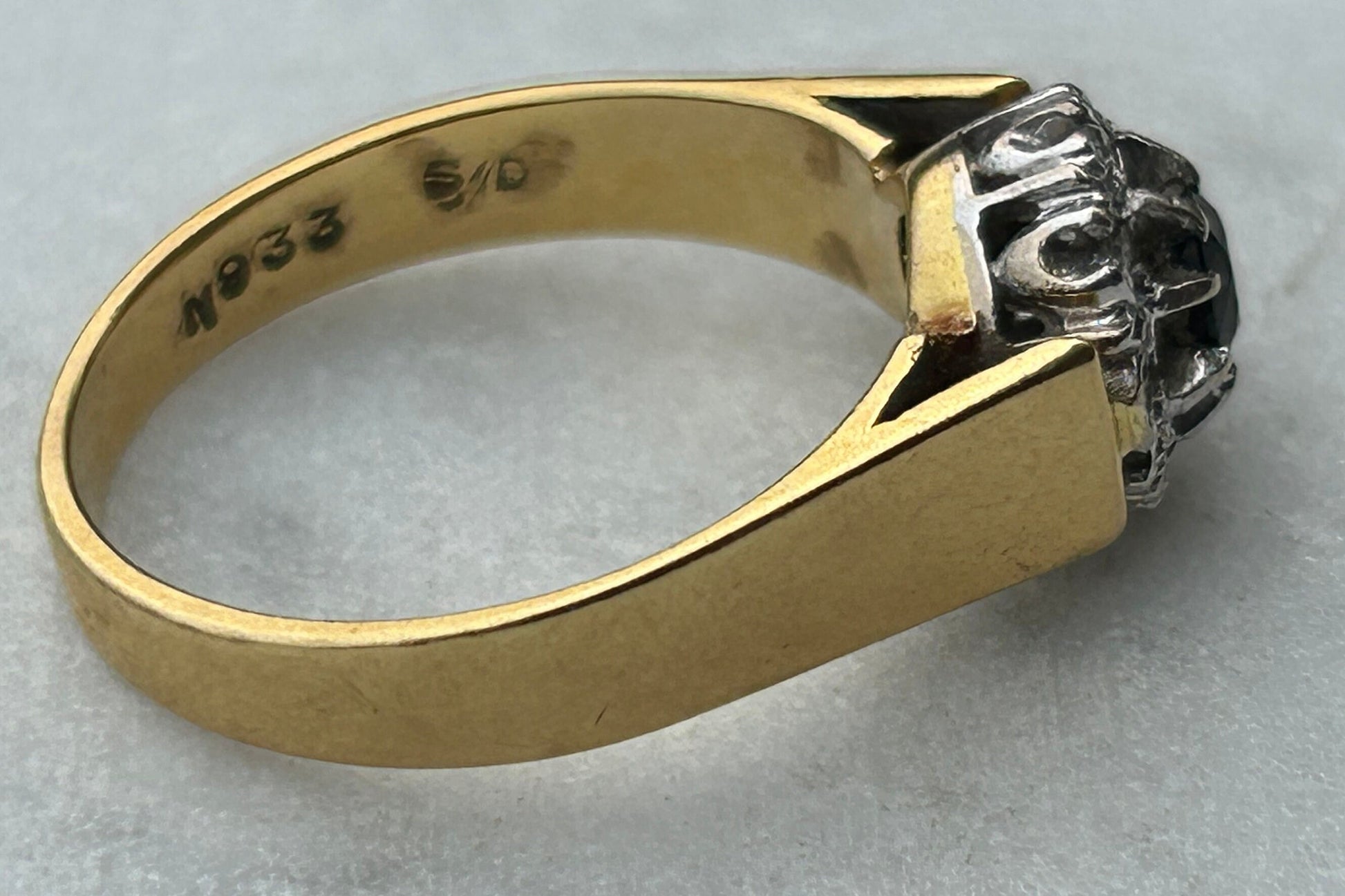 Vintage Sapphire and Diamond Flower 18k Yellow Gold Ring