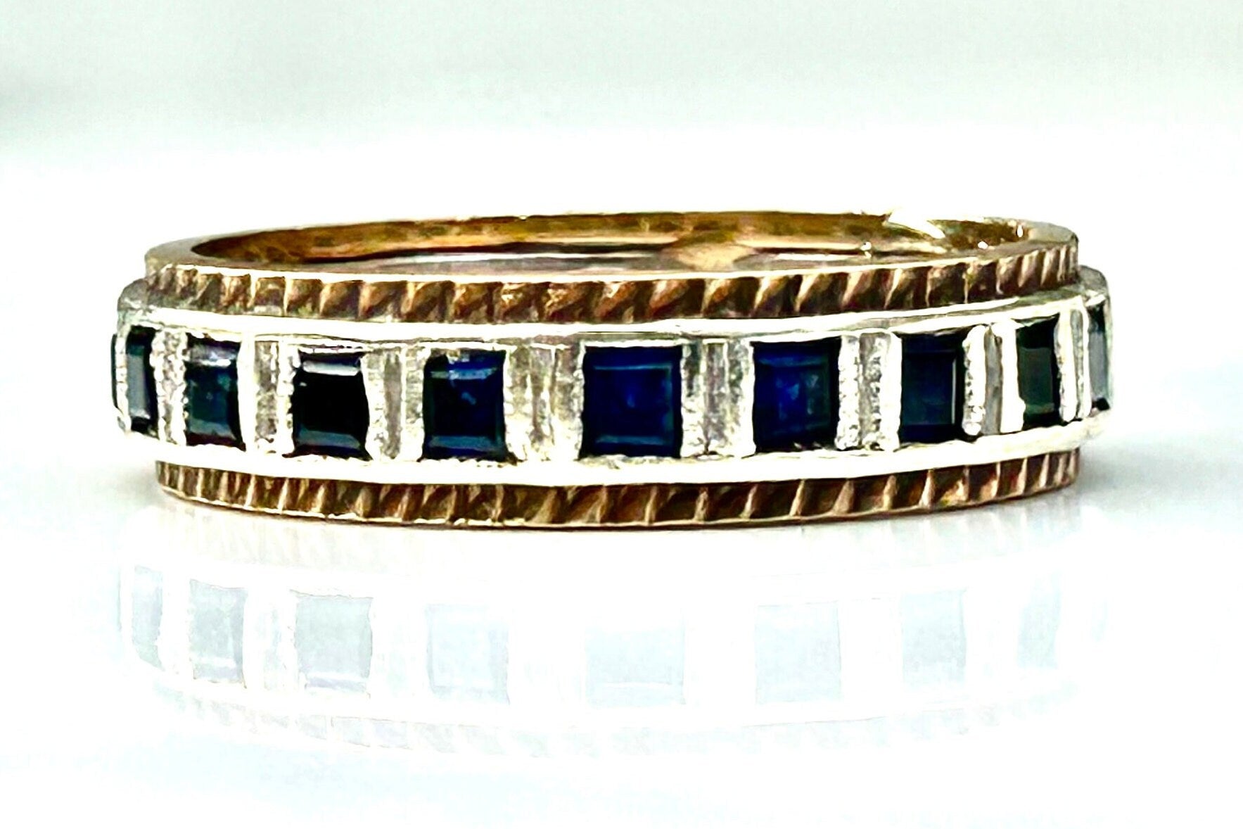 Sapphire Bi-color 9ct Gold Full Eternity Band with small square caliber cut sapphires.