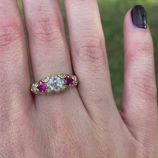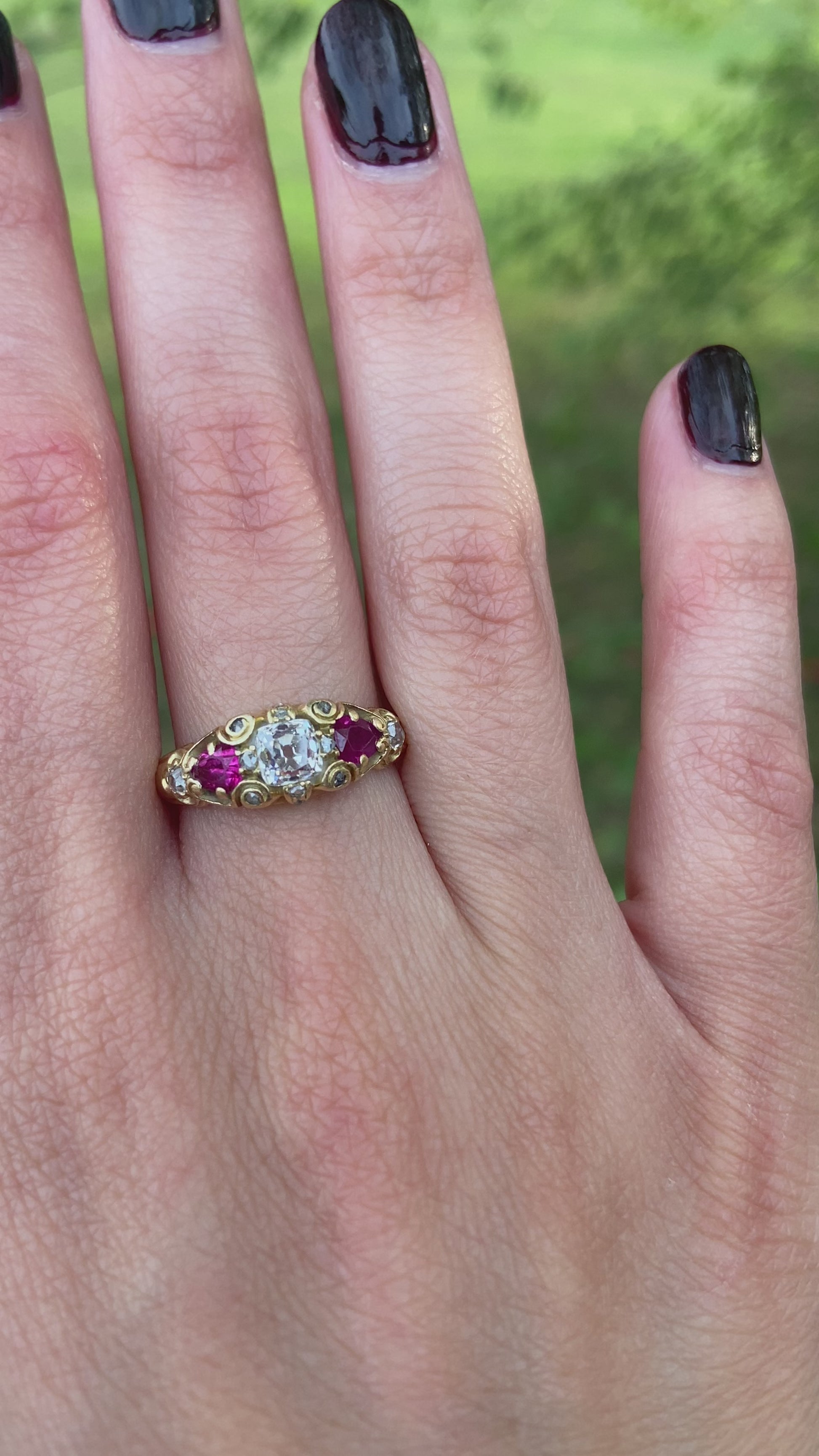 Victorian Old Mine Cut Diamond and Pear Cut Ruby Ring