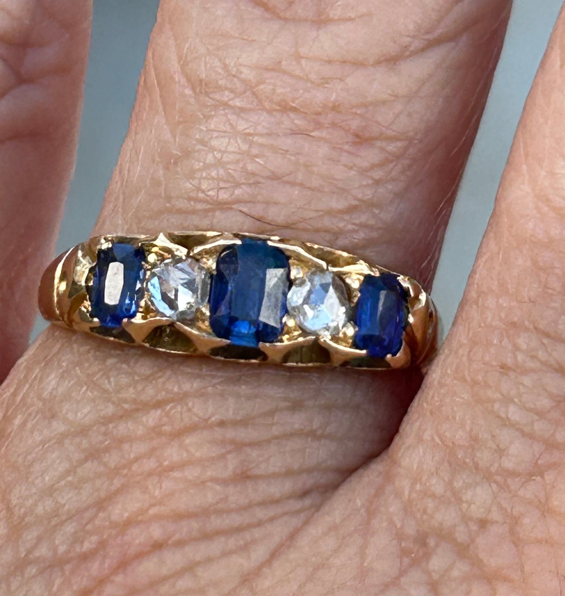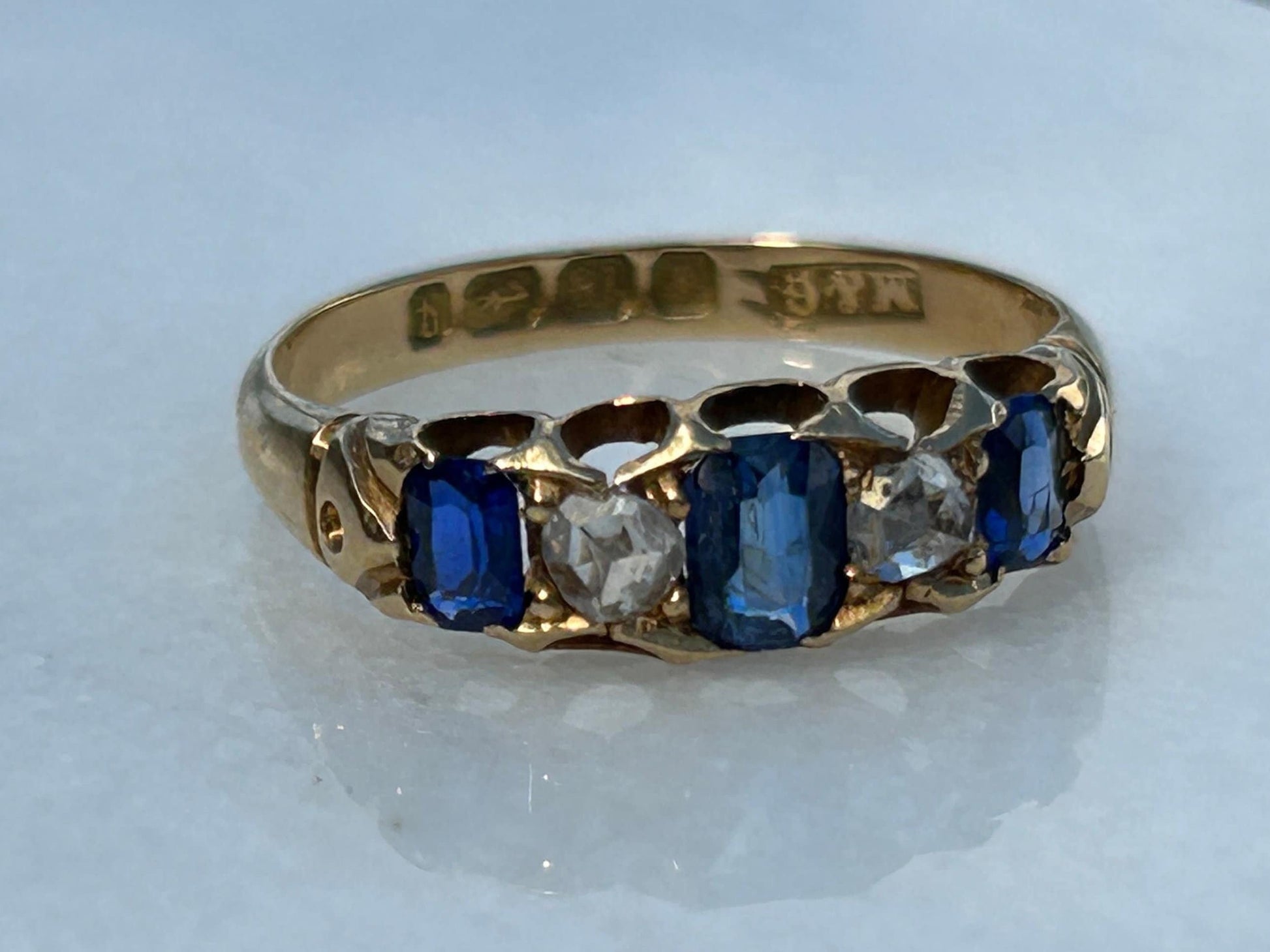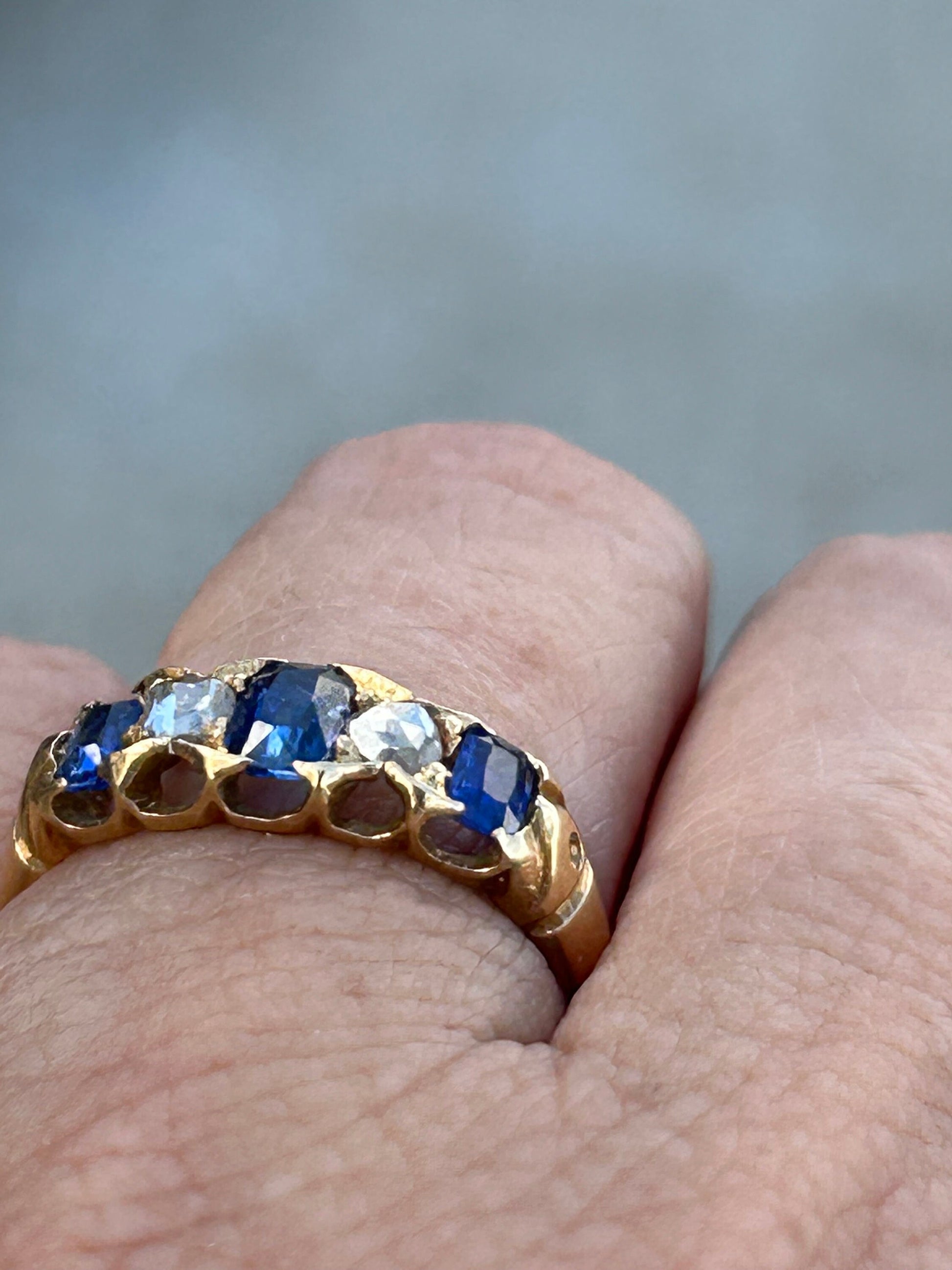 Victorian five stone Sapphire and Rose Cut Diamond Ring.